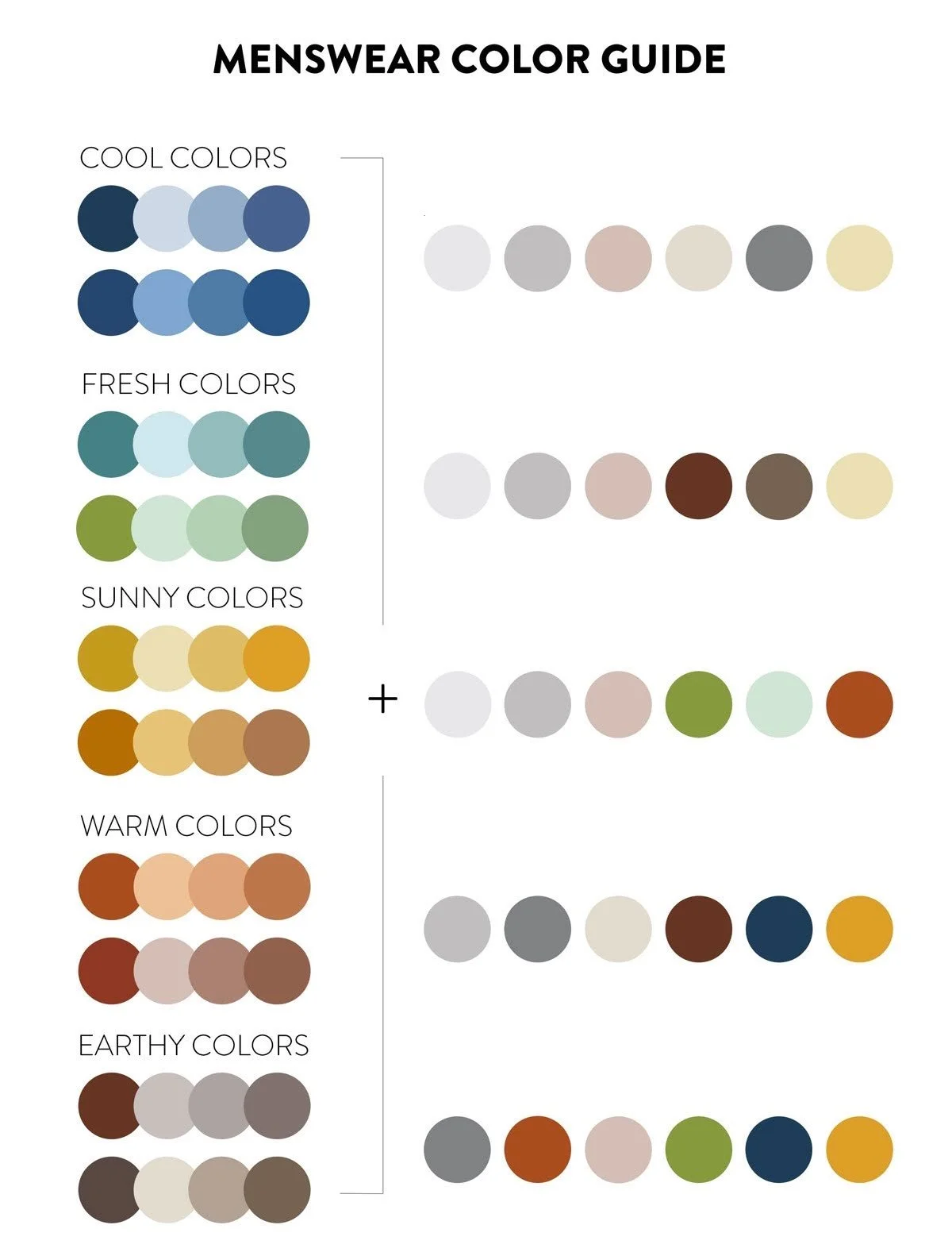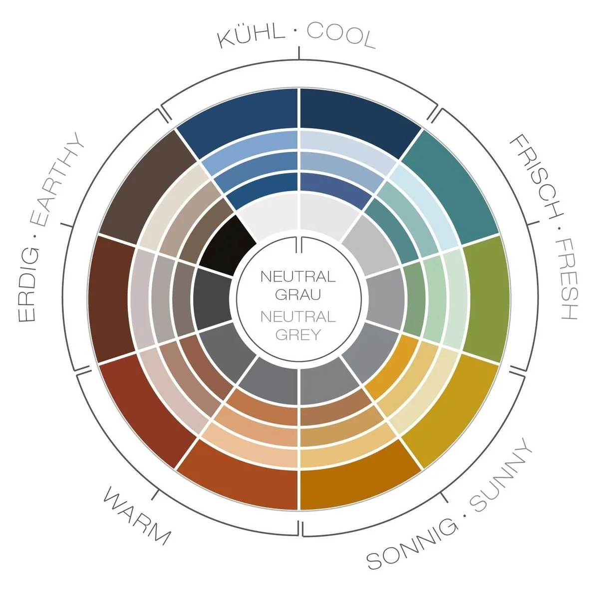 The classic color wheel you learned in school is useful - but limited. A modern menswear color wheel focuses less on primary colors and more on tonal families: warm, earthy, cool and sunny tones. Within those families, you’ll find countless shades that work naturally together. Neon colors and overly synthetic tones are intentionally left out. They’re niche, trend-driven and rarely versatile in real life. Once you identify the tonal family you feel comfortable with, styling becomes significantly easier.