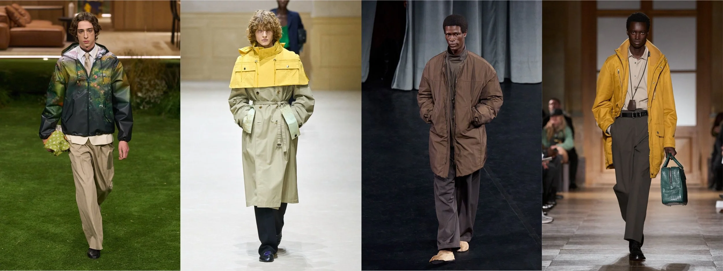 One of the most important shifts of FW26: tailoring evolved to include technical fabrics, utility details and functional construction, all without losing elegance. This is menswear responding to real life again.