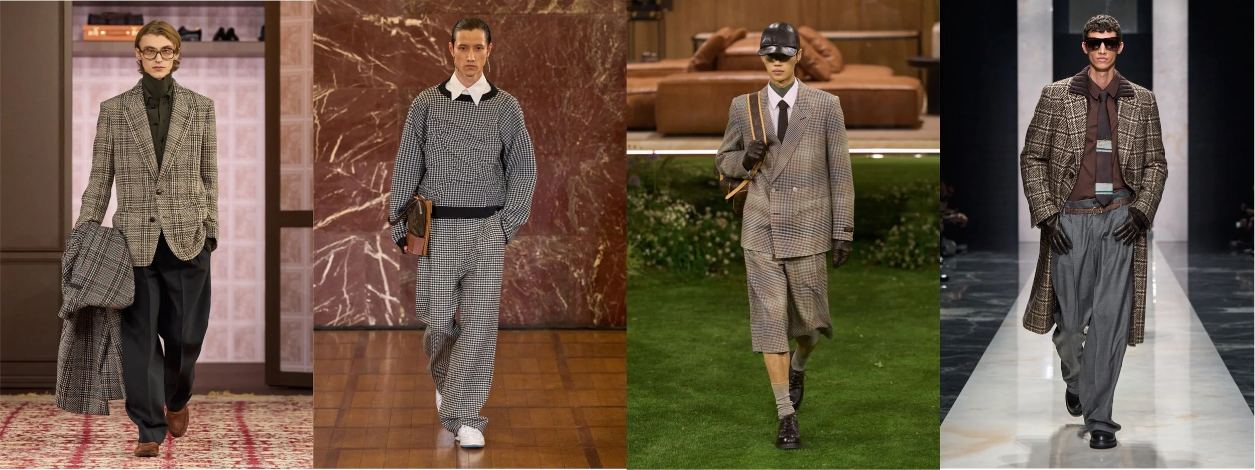 Checks returned! Bold, oversized, unapologetic. Less countryside nostalgia, more urban confidence. Coats, suits and layering pieces carried graphic, weighty patterns.